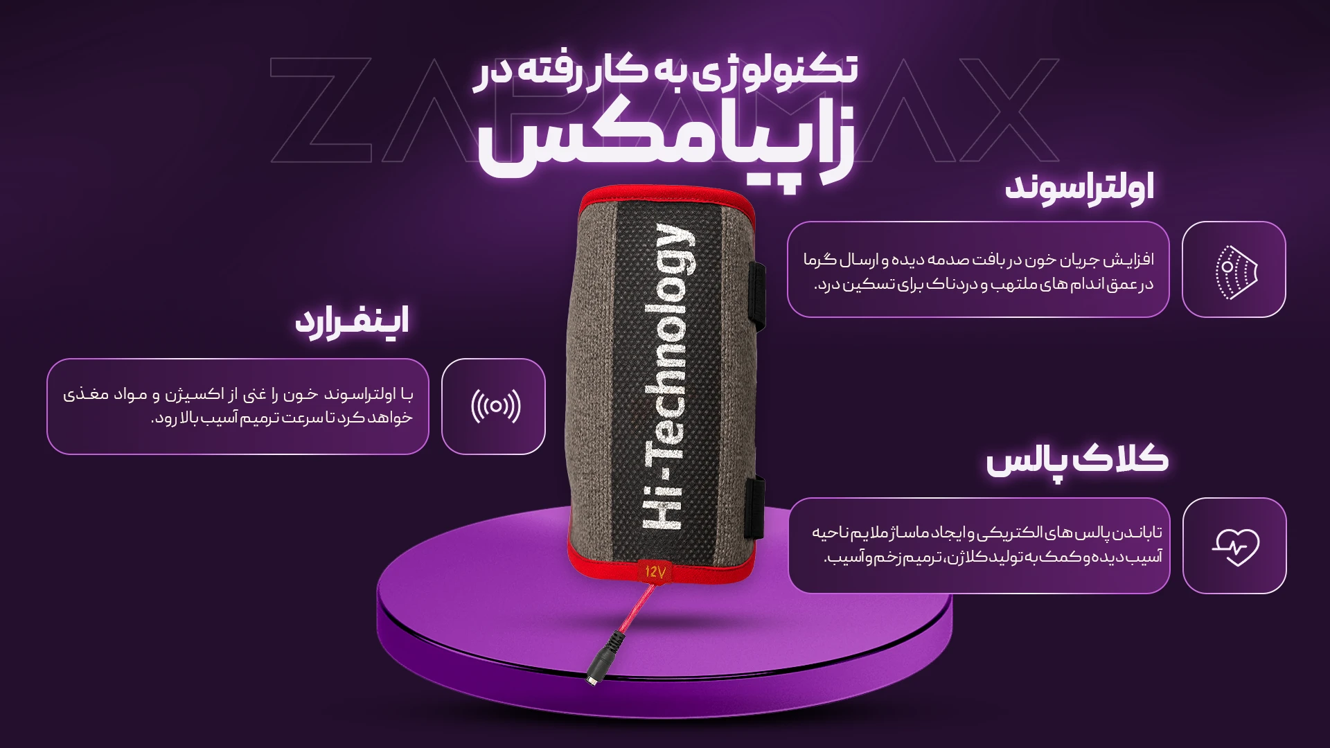 استفاده از زاپیامکس روند درمان و بهبودی زخم و آسیب بعد از جراحی را تسریع میبخشد. زیرا این محصول به 3 تکنولوژی فیزیوتراپی قوی و موثر مجهز شده است.